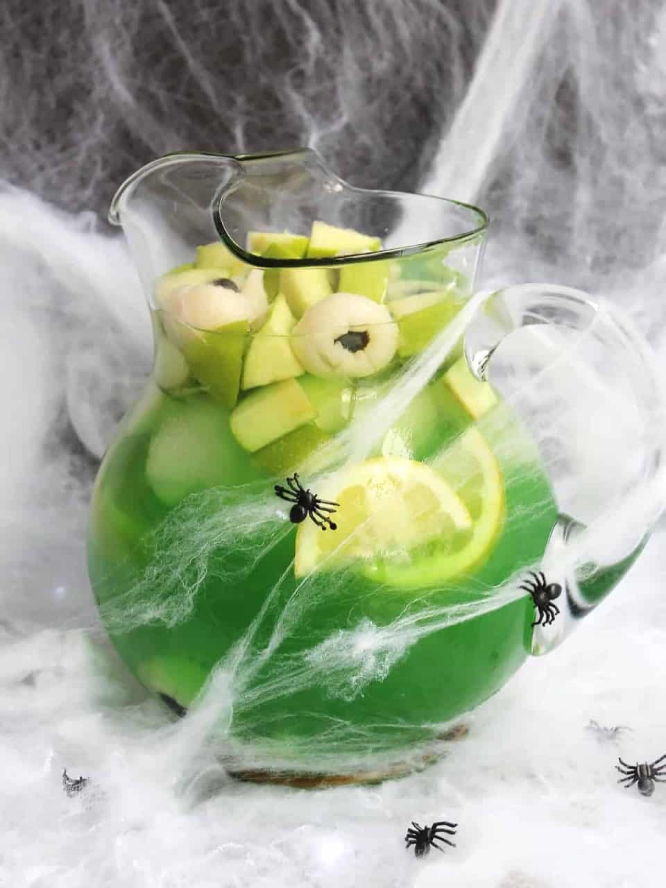 Made with white wine, apple juice and limoncello, Slow the Cook Down really delivers a lighter Halloween cocktail that will quickly become a new favorite Halloween ritual. With fruity ‘eyeballs’ and a spooky green hue, it’s perfect for making ahead of time and serving to your ghoulish guests.